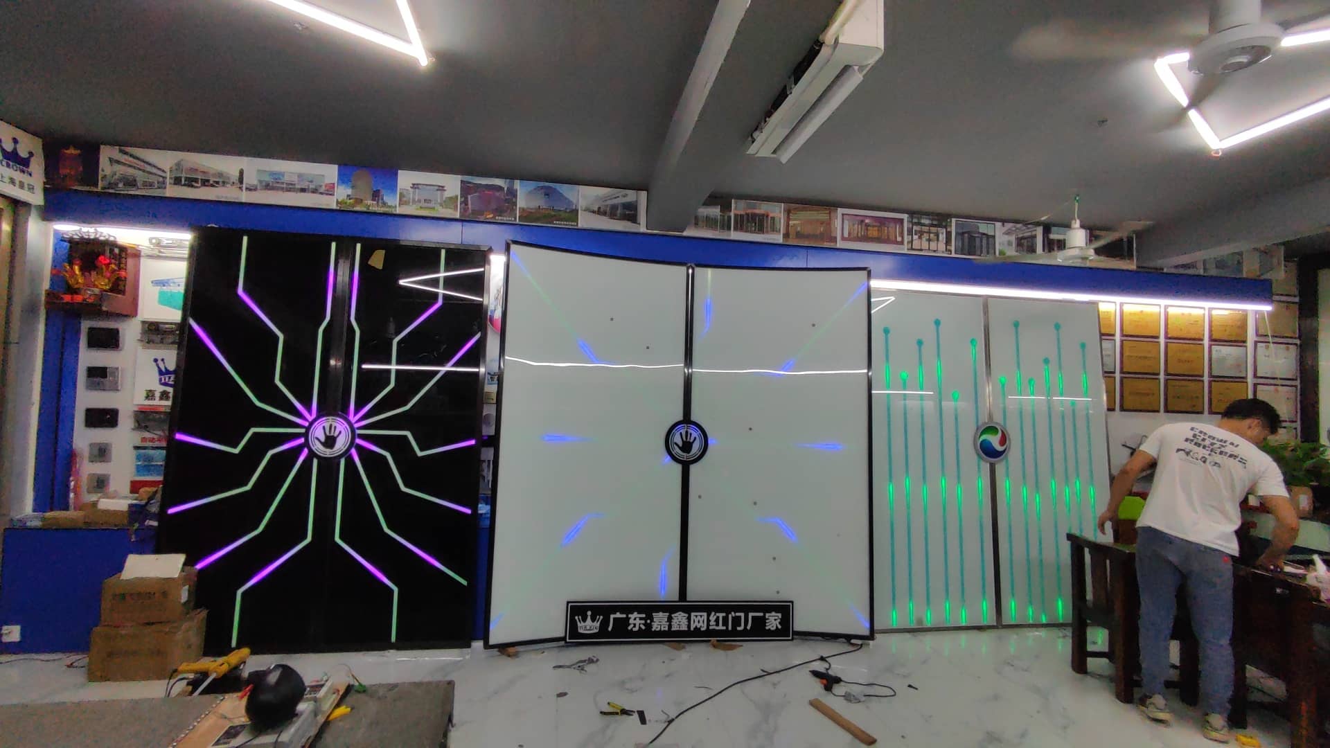 镶嵌玻璃自动灯光科技门