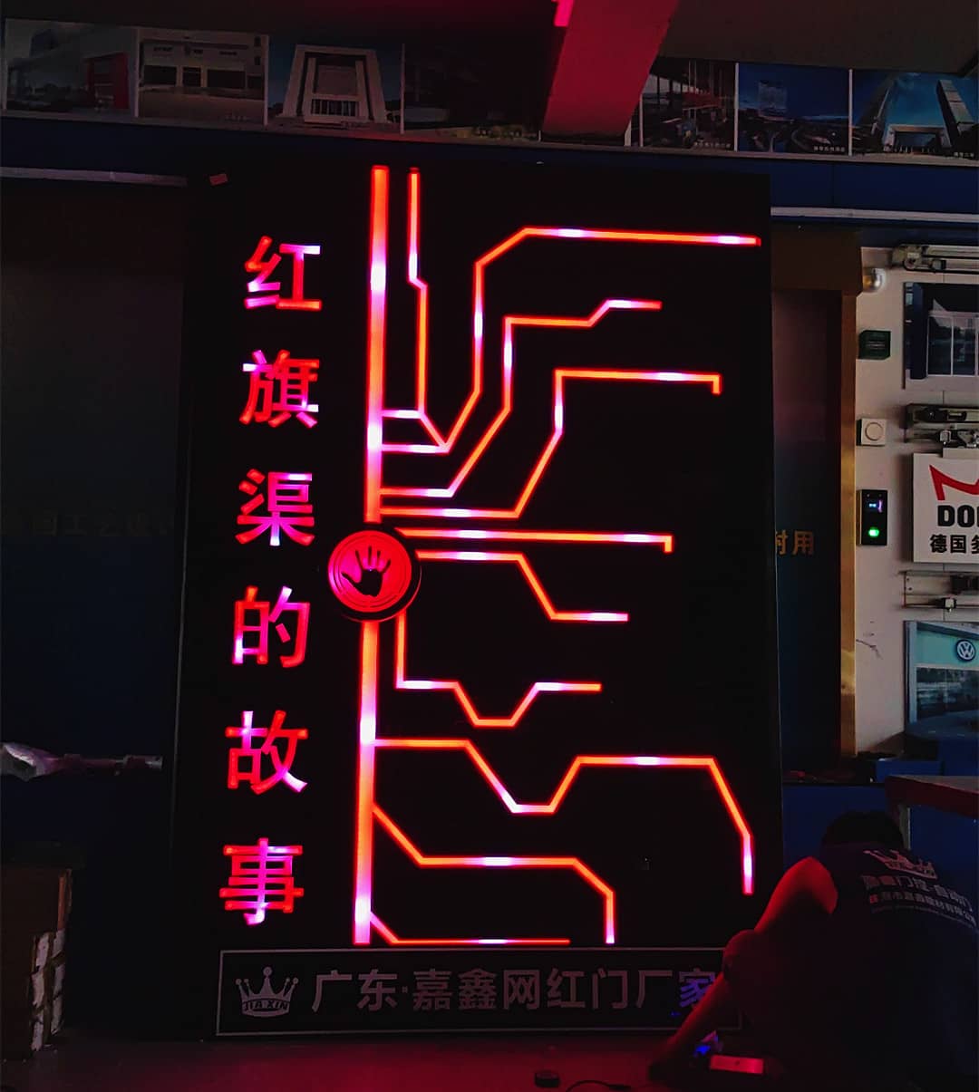 产品描述:嘉鑫网红门厂家为您提供网红门、科技门、掌纹门、酒吧手掌触摸灯光门生产定做,首批网红门从业者,多年制作经验,网红门案例达上万套
